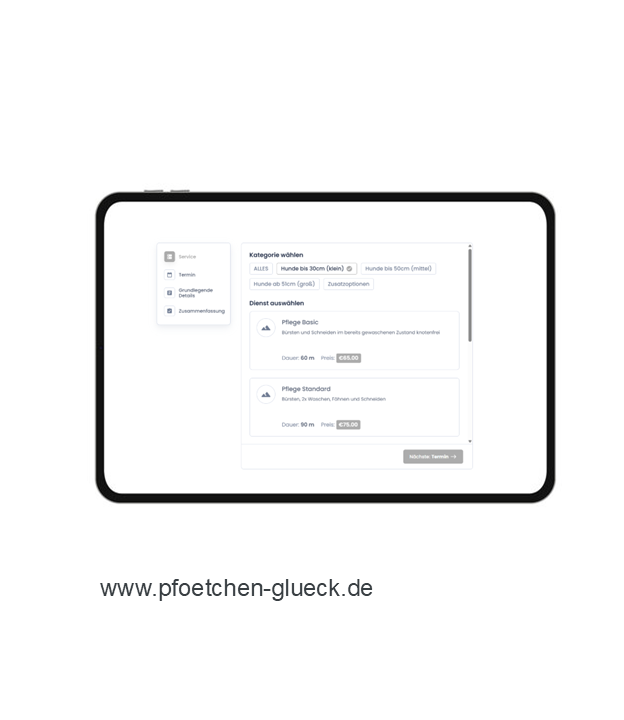 Ihr Terminplan lässt sich in Echtzeit verwalten, und Ihre Kunden können rund um die Uhr bequem Termine reservieren. Das sorgt für mehr Professionalität, bessere Planbarkeit und ein reibungsloses Nutzererlebnis.